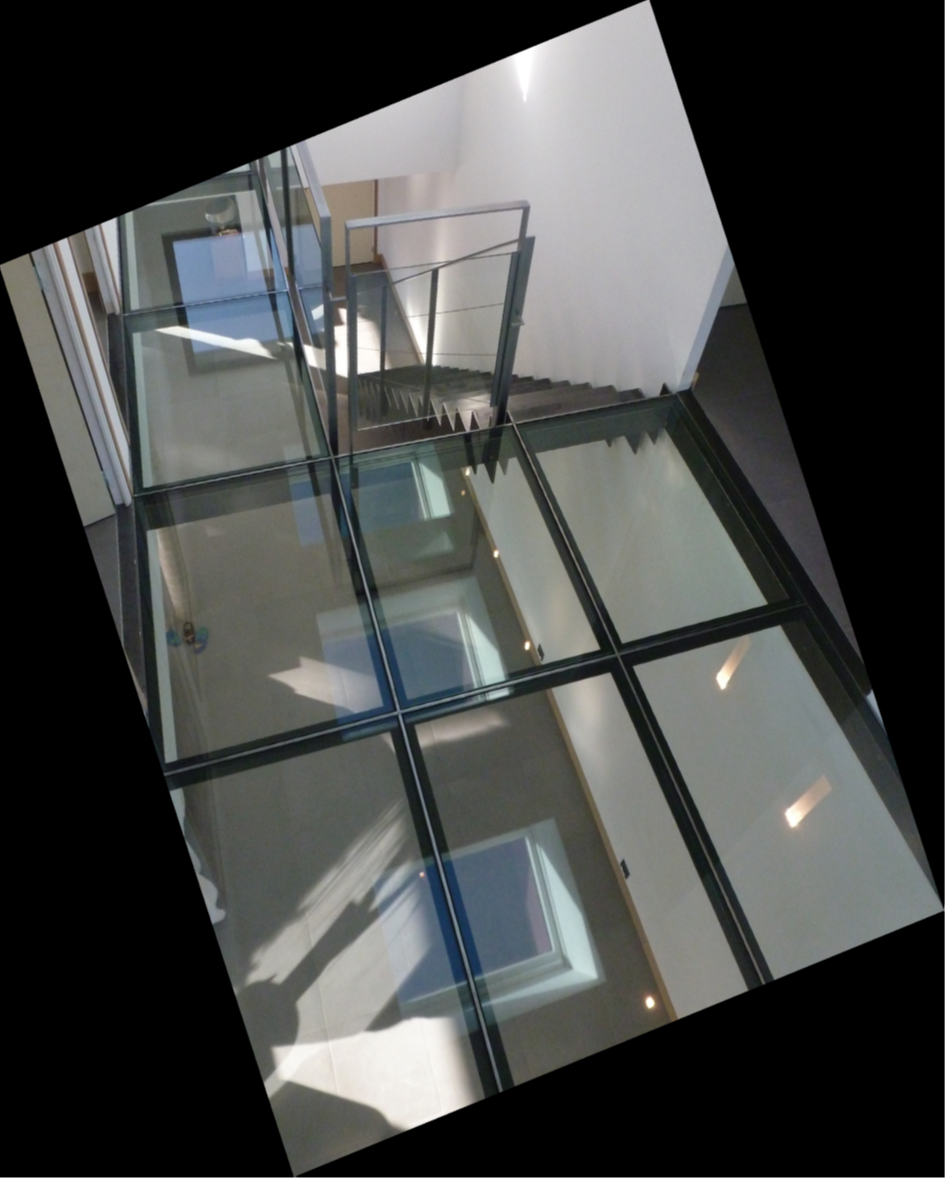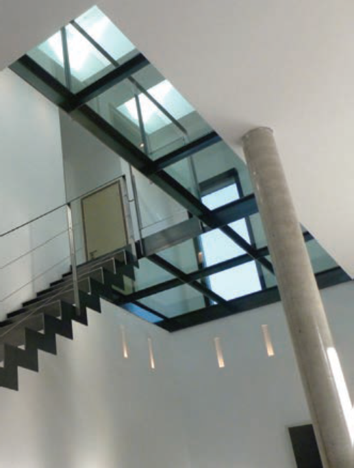 L’espace à vivre lui-même a été rendu accessible par un emmarchement pour respecter les contraintes du terrain et sa forte pente. La maison s’ouvre généreusement vers le sud, des meurtrières permettent des vues à l’est et à l’ouest.