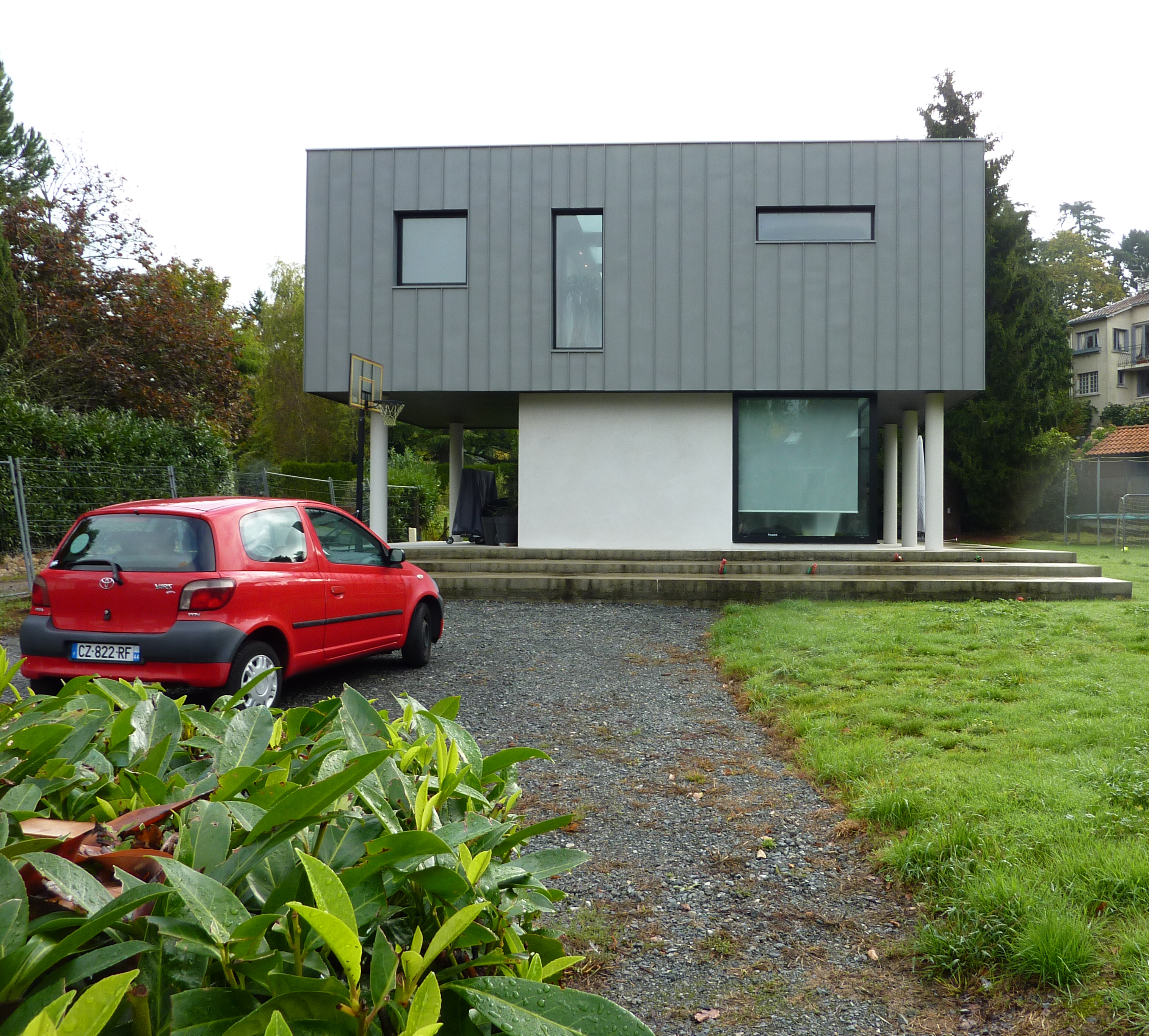 A la problématique de l’implantation d’une maison en zone inondable, A2 ARCHITECTURE a répondu par un jeu de cubes sur pilotis. Les volumes se sont naturellement superposés et organisés autour de la circulation verticale.
